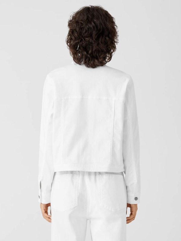 Casual yet refined. A structured denim jacket featuring a stand collar and acropped length. In organic cotton denim with just the right amount of stretch.