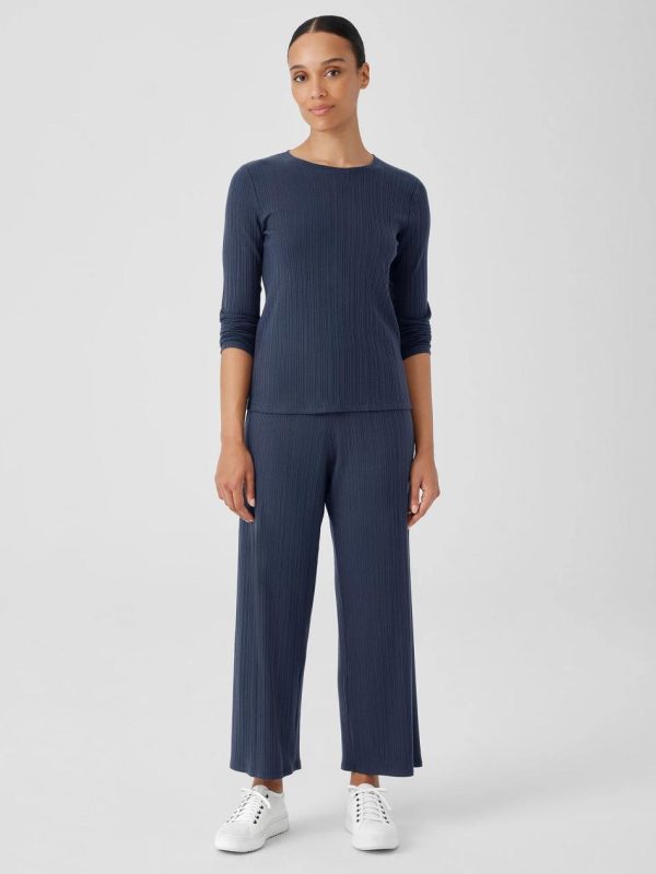Relaxed elegance. A drapey wide-leg pant elevated by fine lines of verticaltexture. In a sophisticated ribbed knit made with Tencel™ Lyocell. Pair it withour matching tops or mix and match.