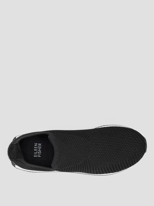 A sporty pull-on sneaker with sleek styling and a low wedge heel. In asustainable stretch knit made from recycled plastic bottles.