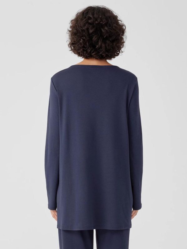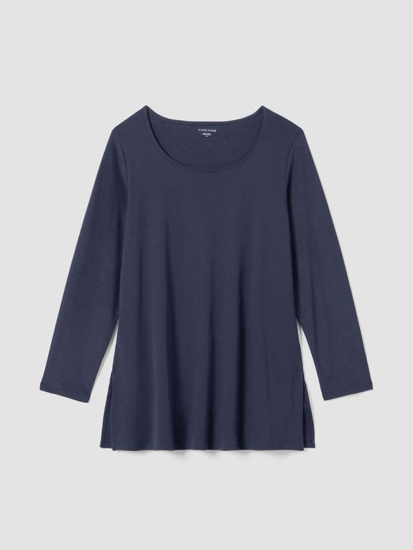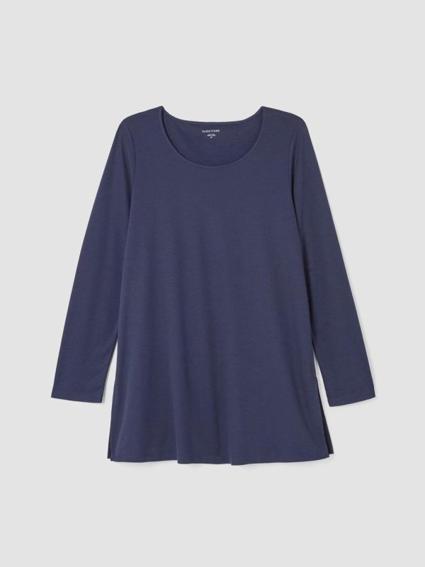 Soft and simple. A scoop neck top with long lines and side slits, perfect forsleeping or lounging around. In responsibly dyed organic cotton.