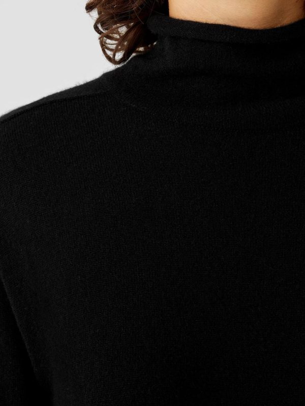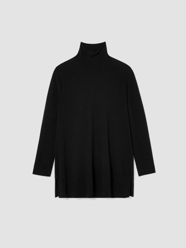Equal parts luxury and comfort. A turtleneck top with long lines and side slits. In our plush and drapey Italian cashmere.