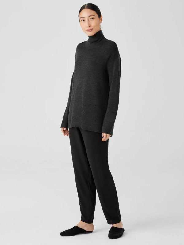 A cozy turtleneck top with long lines and a relaxed fit. Smooth and warm in asoft merino wool yarn.