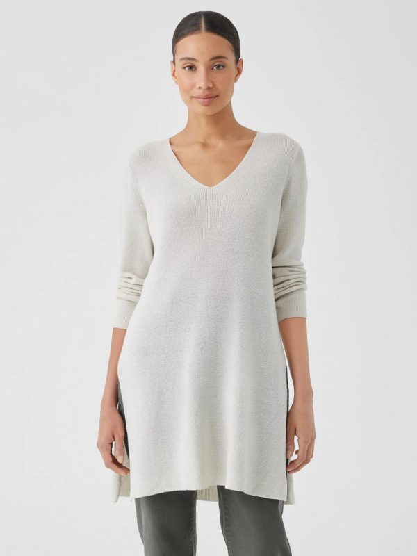 Eileen Fisher Sweaters & Cardigans | Peruvian Organic Cotton Crepe V-Neck Long Top Black Women