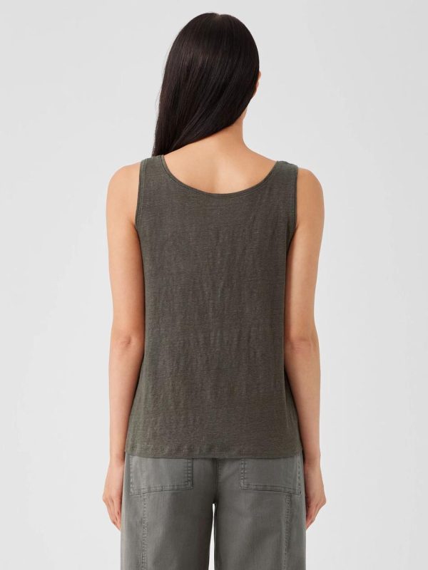 An essential shape. A scoop neck tank you can wear on its own or layer under acardigan. In our signature Organic Linen Jersey, lightweight with nuancedtexture. Made in a Fair Trade Certified™ factory.