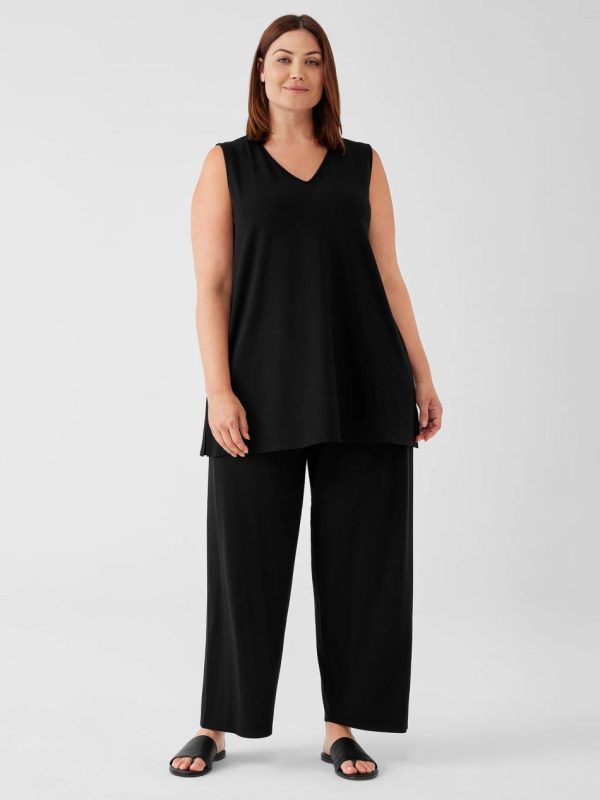 Sleek and versatile. A V-neck tank with long lines and side slits. In ourbody-skimming jersey knit that dresses up or down.