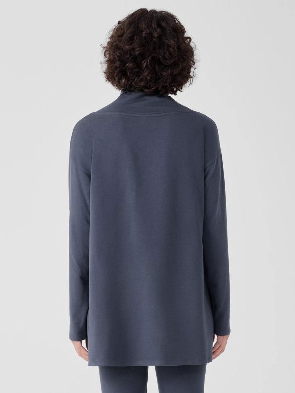 Effortless comfort. A drapey funnel neck top with long lines and dramatic sideslits. In our best-loved terry—fleece lined with the natural stretch of a knit.So soft, we call it the “Hug.”