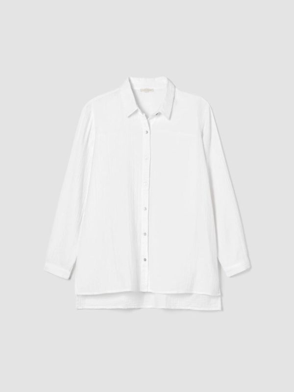 Eileen Fisher Tops & Tees | Organic Cotton Ripple Classic Collar Shirt White Women
