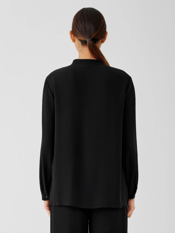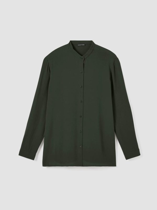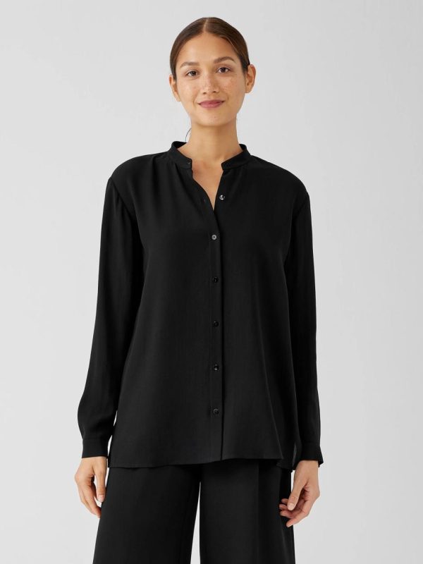 Understated elegance. A mandarin collar shirt designed with a button front andside slits. In our signature Silk Georgette Crepe, perfect day or night.