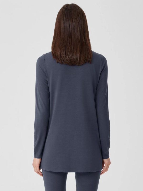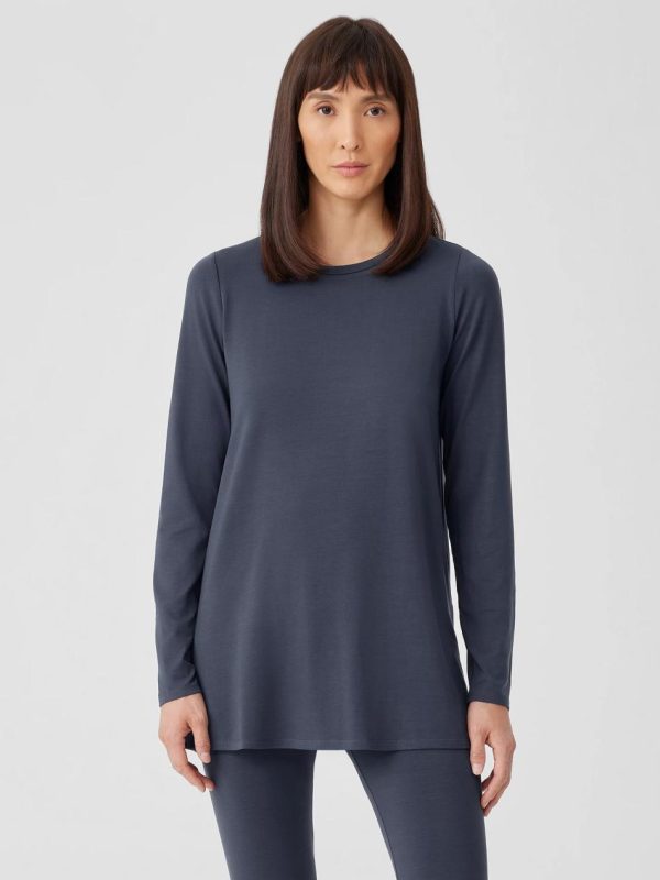 A simple shape for every day. Our classic crew neck top with long lines and sideslits. Versatile and stretchy in a jersey knit made with Tencel™ Lyocell.