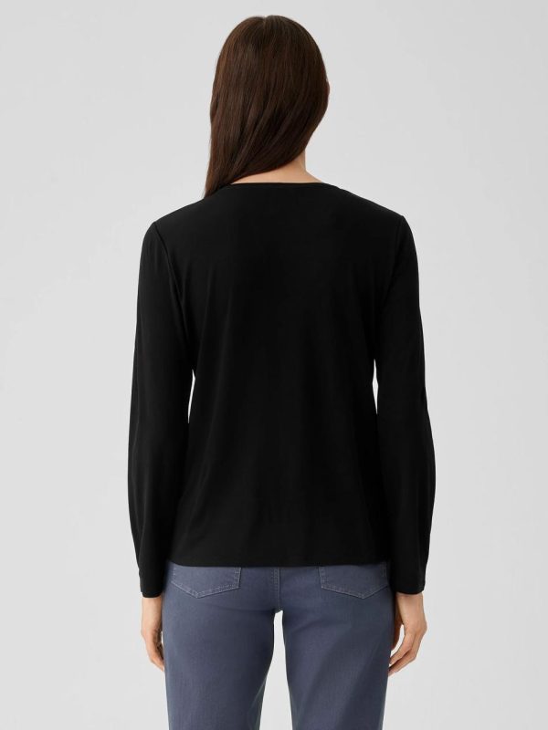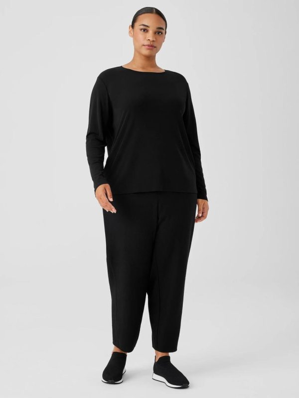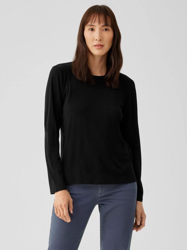 The crew neck top—a wardrobe essential with long sleeves and a slim fit. Inwashable Stretch Silk Jersey with natural stretch.
