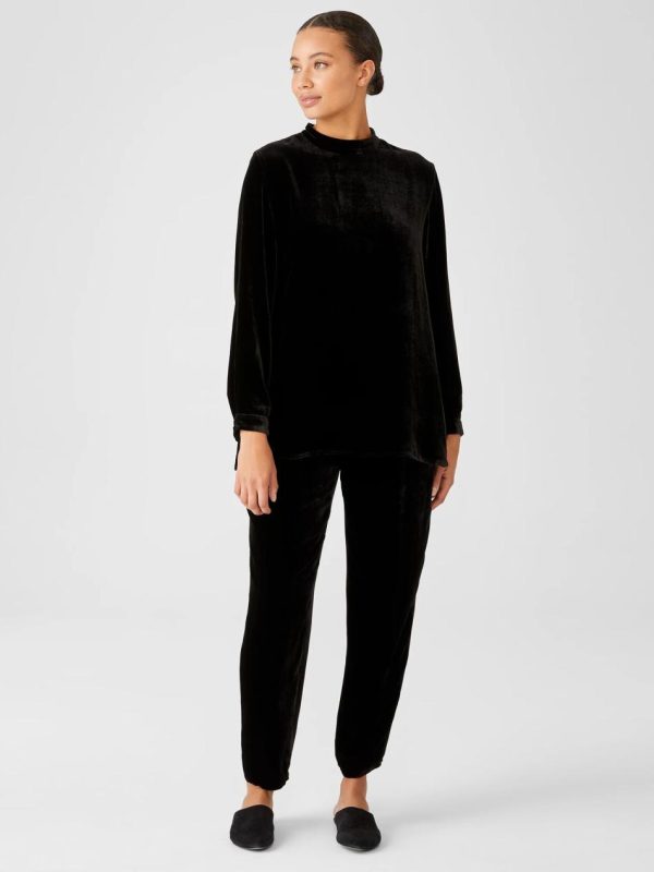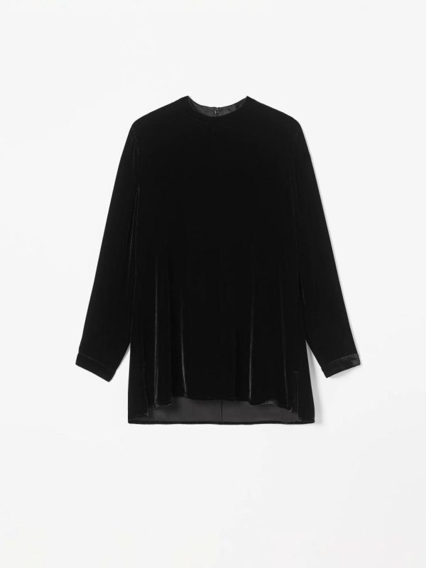 An elegant long top with a mock neck and relaxed fit. Soft and shimmering in our responsibly dyed velvet with a touch of silk.